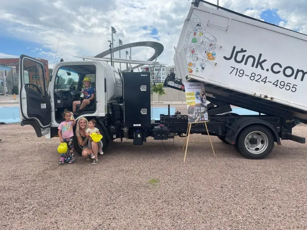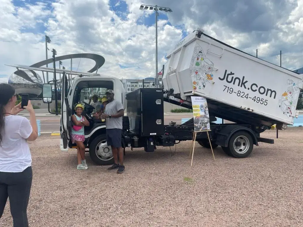 The junk removal truck joins the Touch-A-Truck lineup at a local community event benefiting veterans.